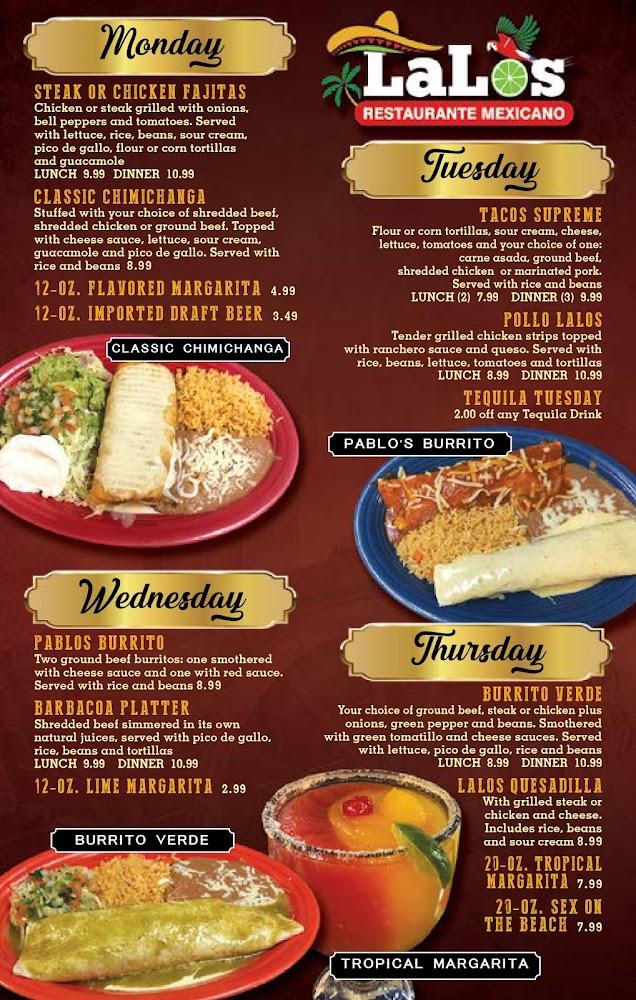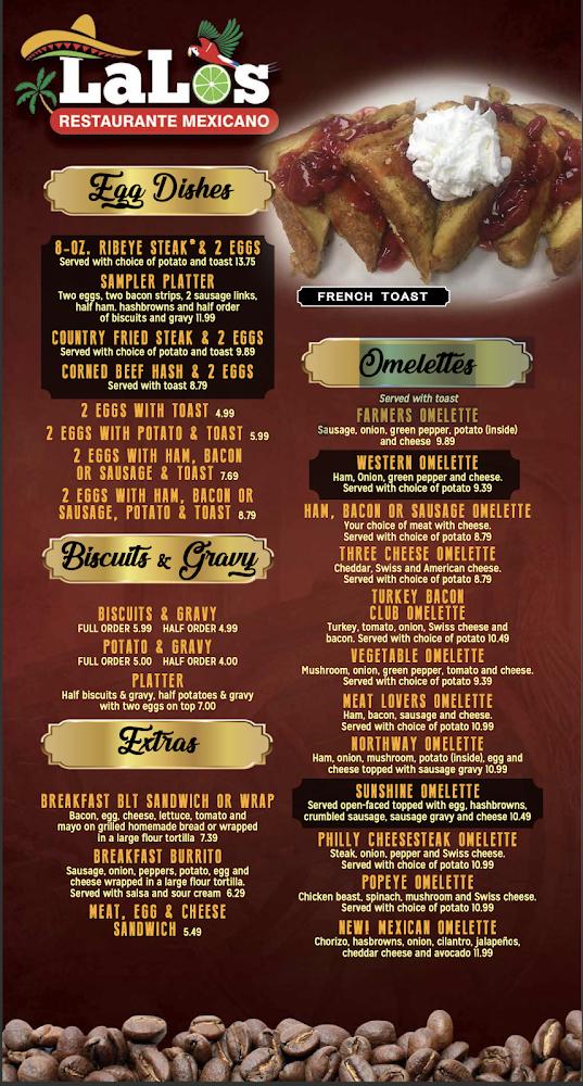 At Lalos, a diverse menu caters to many tastes. Signature items include tacos, fajitas, and multiple dips like homemade guacamole and queso. Diners can explore dishes like nachos de la casa or indulge in a plate of sizzling fajitas. Every item reflects traditional Mexican flavors and an extensive selection, ensuring everyone finds something they love.